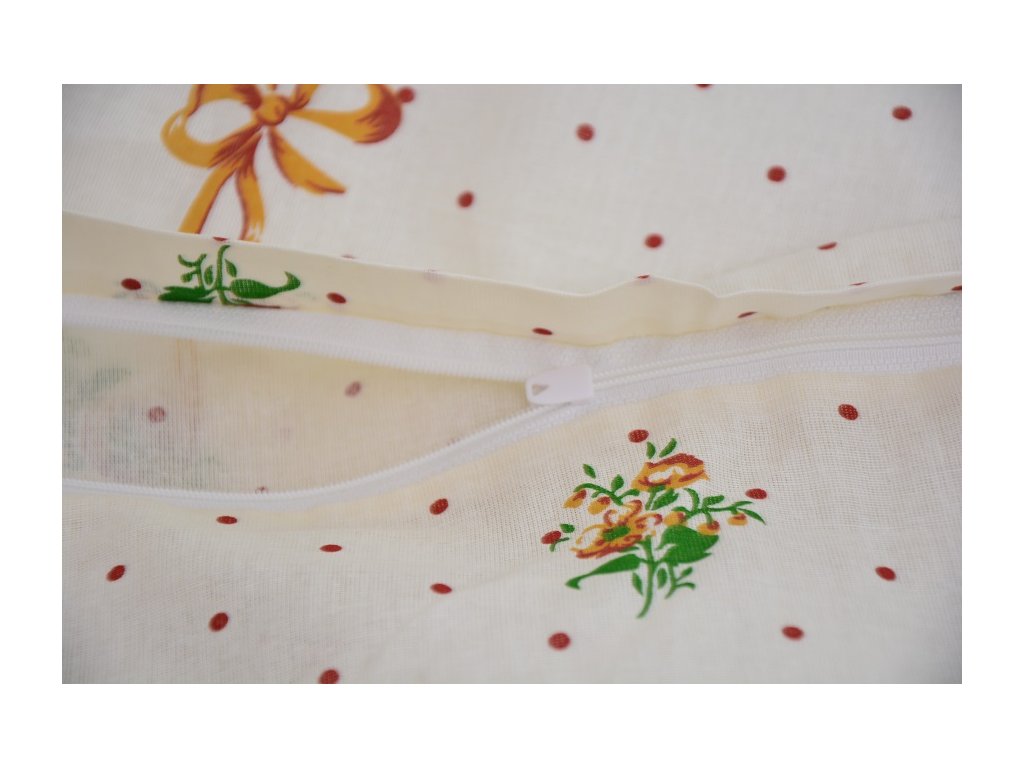 Tieto oranžovo-biele obliečky veľkej veľkosti na francúzske lôžko obsahuje 2x obliečku na vankúš o veľkosti 70x90 cm a 1x obliečku na veľkú posteľ o veľkosti 220x200 cm. Praktické zapínanie obliečky na zips.