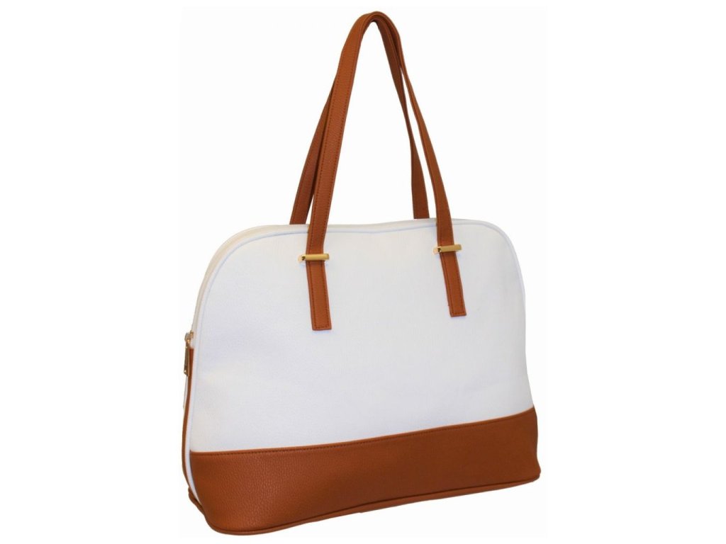 Krásna dámska kabelka je vyrobená zo silnej eko kože. Vnútornú časť tvorí podšívka z polyesterovej vlny. Táto štýlová bielo hnedá kabelka je praktická. Zmestí sa do nej to najdôležitejšie (mobilný telefón, peňaženka, kľúče) plus nejaké tie drobnosti. Má jeden hlavný úložný priestor vybavený tromi vreckami, z ktorých jedno má zapínanie na zips. Uzatváranie celej tašky je na zips. Kabelka má rukoväte vďaka, ktorým sa dá kabelka nosiť v ruke. Túto kabelku si zamilujete a stane sa Vaším každodenným spoločníkom v dňoch, kedy postačia mať so sebou iba tie najdôležitejšie veci. Rozmery tašky sú 27x31-37x14 cm.