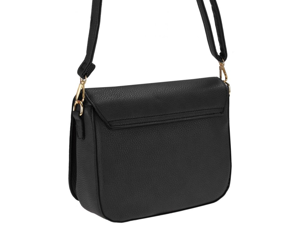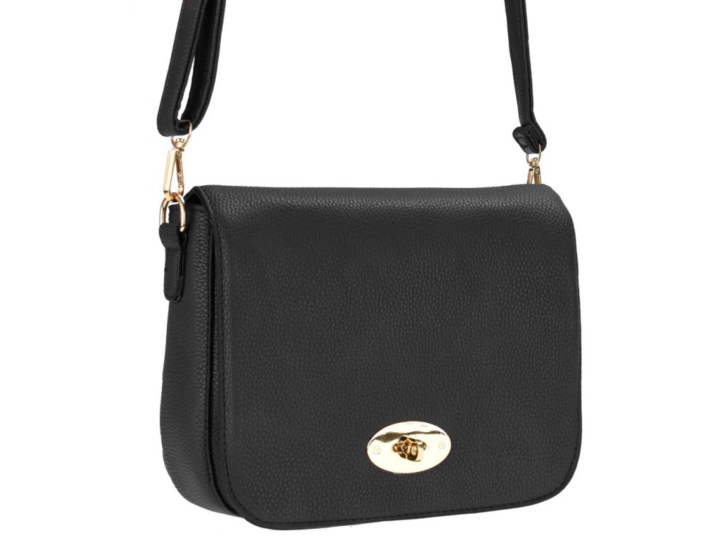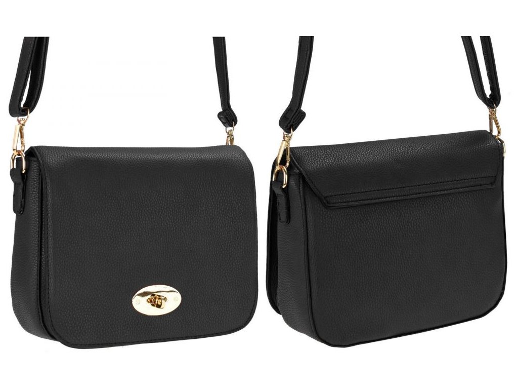 Dámska štýlová kabelka je vyrobená z vysoko kvalitnej eko kože. Vnútornú časť tvorí podšívka z polyesterovej vlny. Táto štýlová čierna kabelka je elegantná a praktická. Zmestí sa do nej to najdôležitejšie (mobilný telefón, peňaženka, kľúče) plus nejaké tie drobnosti. Má jeden hlavný úložný priestor vybavený tromi vnútornými vreckami, z ktorých jedno sa zapína na zips. Hlavné vrecko sa zatvára na magnet. Kabelku zdobí zlaté kovanie. Nosí sa pohodlne vďaka nastaviteľnému popruhu, ktorý sa ľahko odníma. Túto kabelku si zamilujete a stane sa Vaším každodenným spoločníkom v dňoch, kedy postačia mať so sebou iba tie najdôležitejšie veci. Je vhodná na cesty do práce alebo na výlety. Rozmery tašky sú 18x21x6 cm.