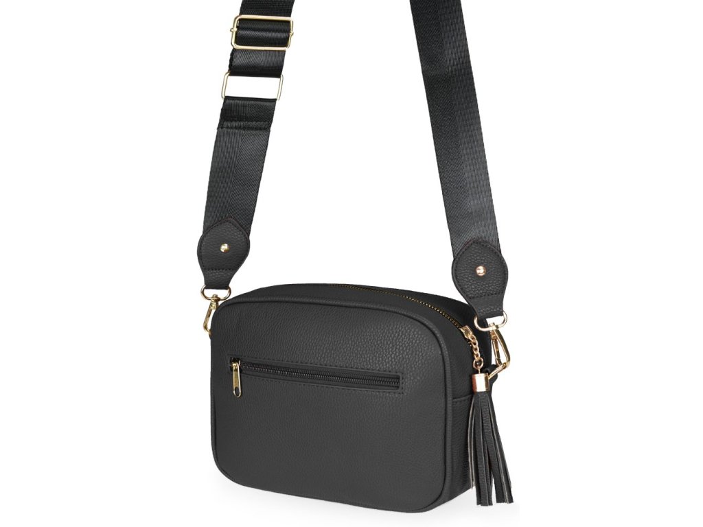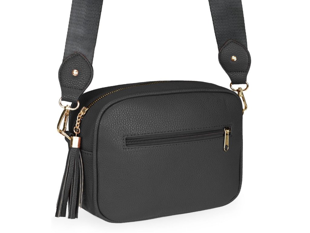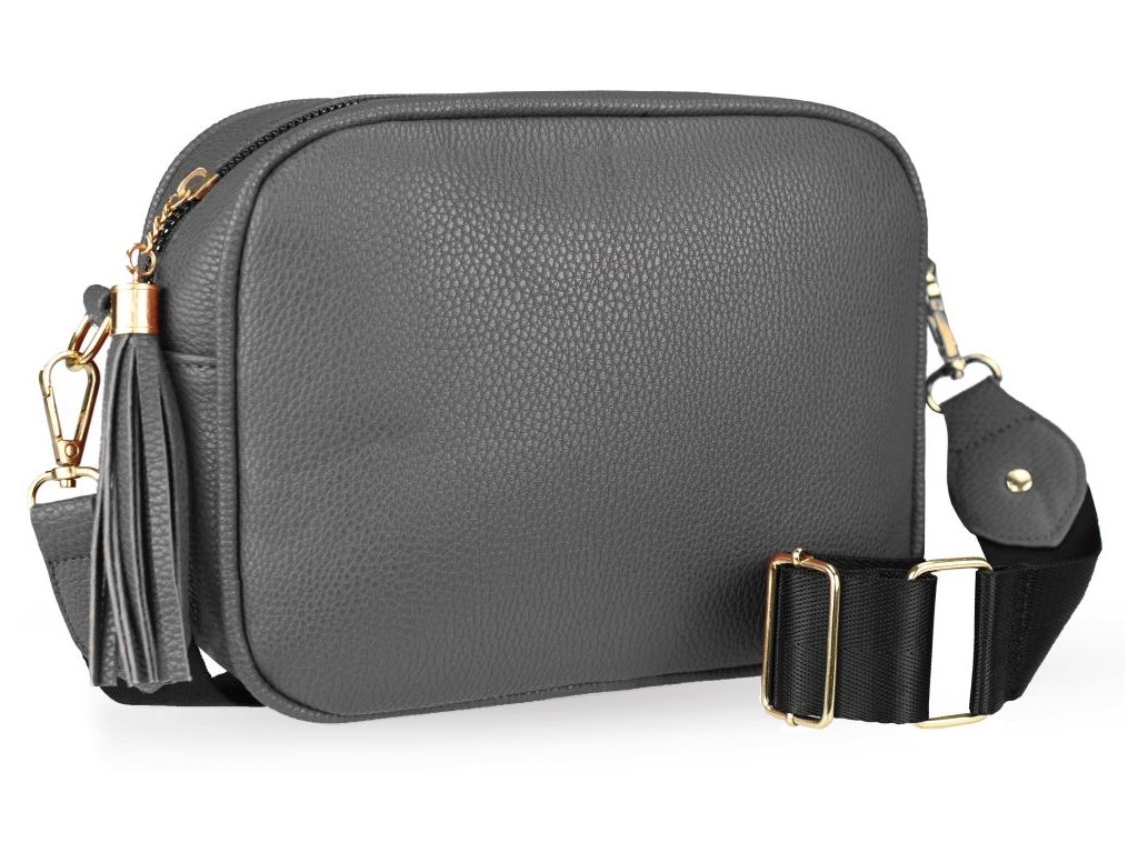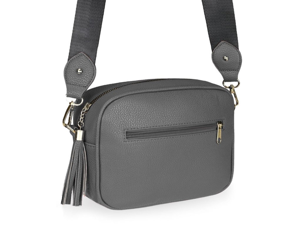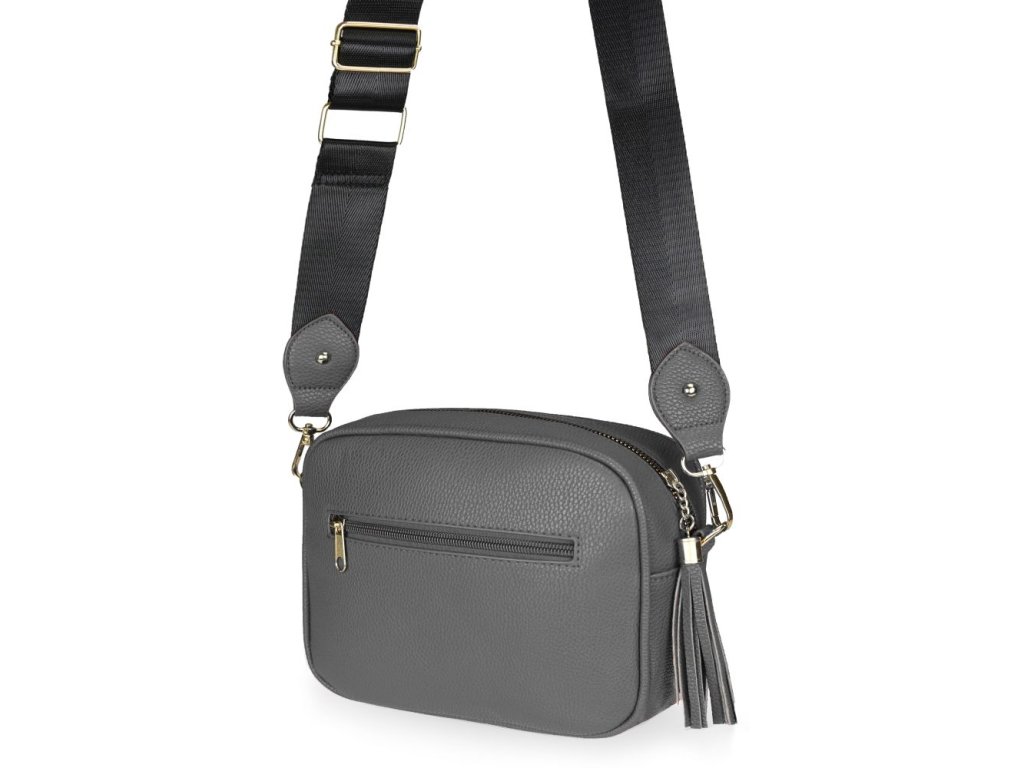 Elegantná dámska kabelka je vyrobená z vysoko kvalitnej eko kože. Vnútornú časť tvorí podšívka z polyesteru. Táto malá športovo elegantná kabelka má jeden hlavný úložný priestor so zapínaním na zips. Je vybavená dvoma vnútornými vreckami, z ktorých jedno je so zipsom. Je praktická a zmestí sa do nej to najdôležitejšie (mobilný telefón, peňaženka, kľúče) plus nejaké tie drobnosti. Kabelka sa pohodlne nosí kross vďaka popruhu s reguláciou. Zdobí ju strapec a zlaté kovanie, ktoré dodáva kabelke osobitý vzhľad. Túto kabelku si zamilujete a stane sa Vaším každodenným spoločníkom v dňoch, kedy postačia mať so sebou iba tie najdôležitejšie veci. Je vhodná na cesty do práce, do mesta alebo na párty či výlety.