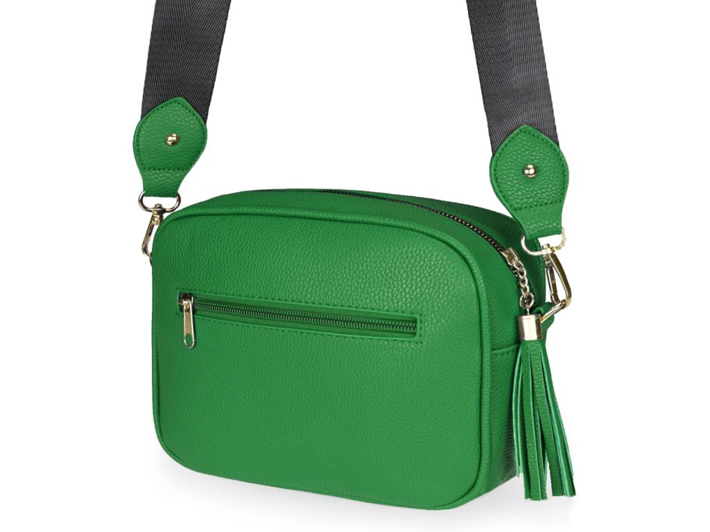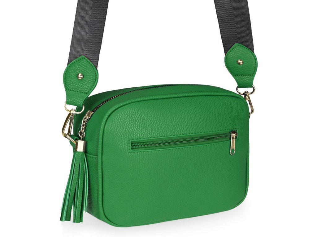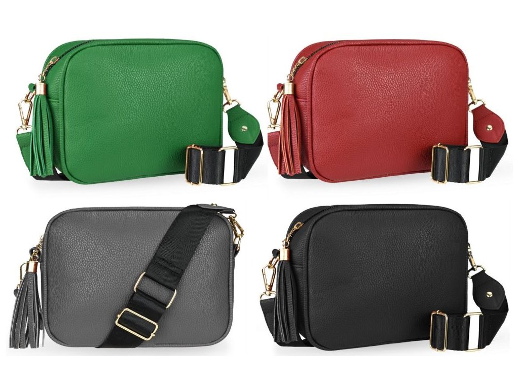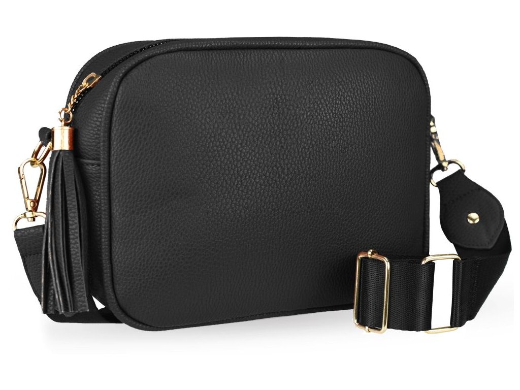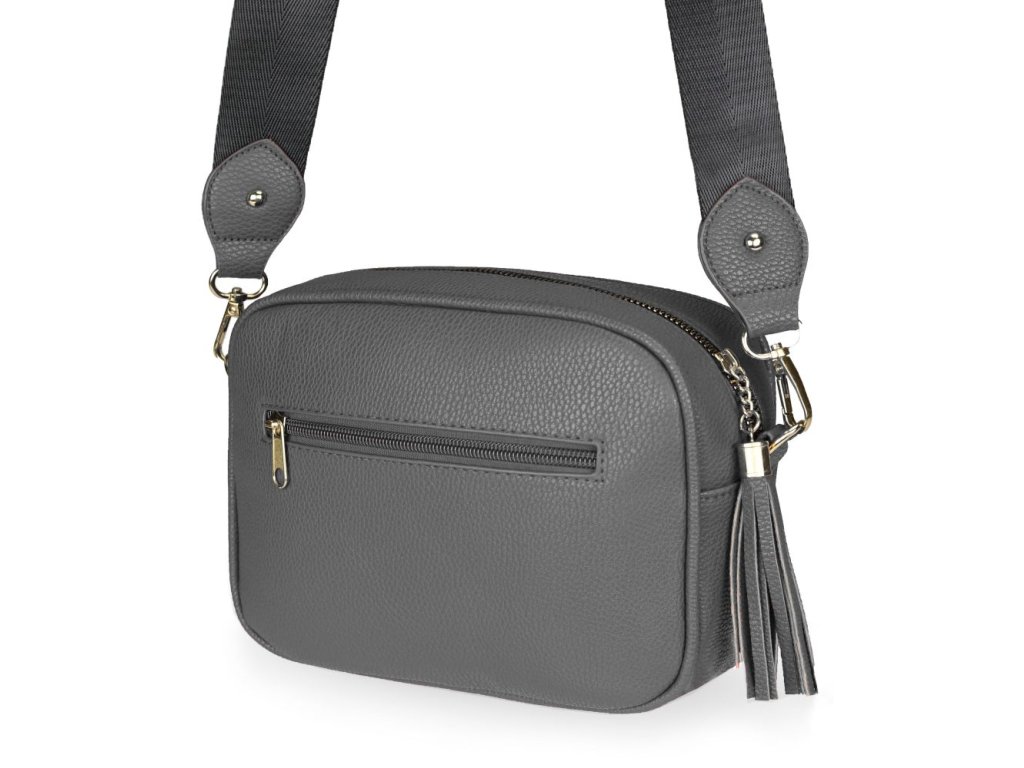 Elegantná dámska kabelka je vyrobená z vysoko kvalitnej eko kože. Vnútornú časť tvorí podšívka z polyesteru. Táto malá športovo elegantná kabelka má jeden hlavný úložný priestor so zapínaním na zips. Je vybavená dvoma vnútornými vreckami, z ktorých jedno je so zipsom. Je praktická a zmestí sa do nej to najdôležitejšie (mobilný telefón, peňaženka, kľúče) plus nejaké tie drobnosti. Kabelka sa pohodlne nosí kross vďaka popruhu s reguláciou. Zdobí ju strapec a zlaté kovanie, ktoré dodáva kabelke osobitý vzhľad. Túto kabelku si zamilujete a stane sa Vaším každodenným spoločníkom v dňoch, kedy postačia mať so sebou iba tie najdôležitejšie veci. Je vhodná na cesty do práce, do mesta alebo na párty či výlety.