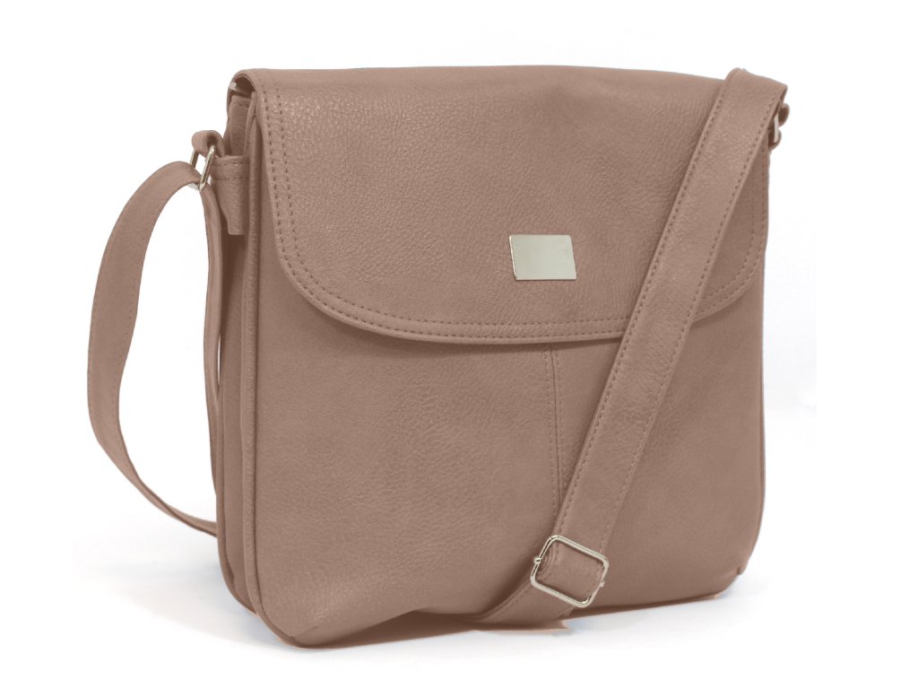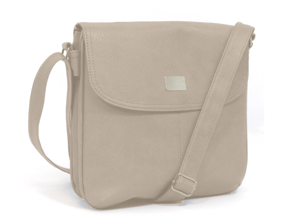 Táto kabelka cez rameno je vhodná na pochôdzky do mesta aj do práce. Kabelka patrí medzi menšie, ale je veľmi praktická. Kabelku tvoria 2 samostatne prístupné oddiely, uzatvárateľné samostatne zipsy a oba oddiely sa zatvárajú klopou na magnetku. Vnútri je v 1. oddiele malé vrecko na zips av 2. oddiele 2 malé otvorené vrecká. Kabelka je zdobená iba prešitím predného dielu a hladkým kovaním magnetky.