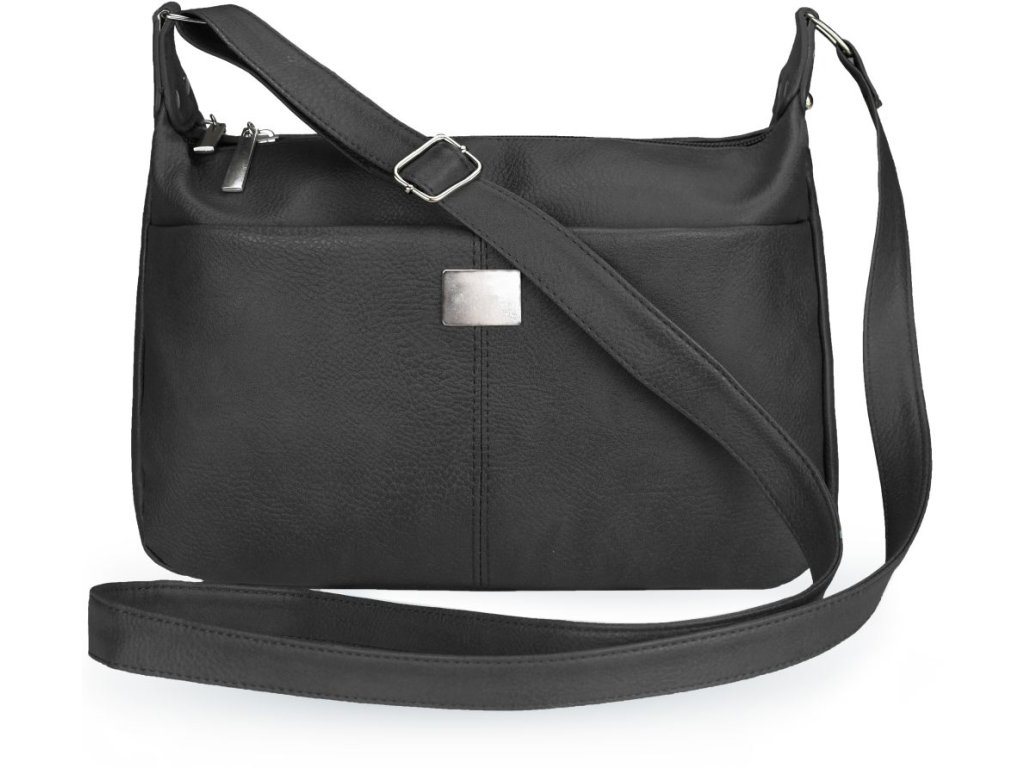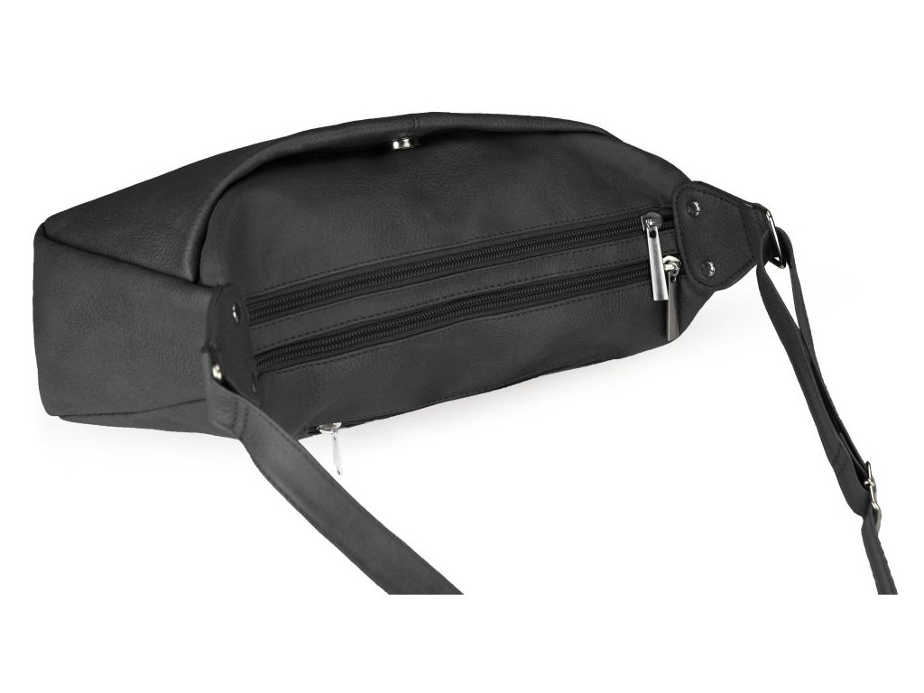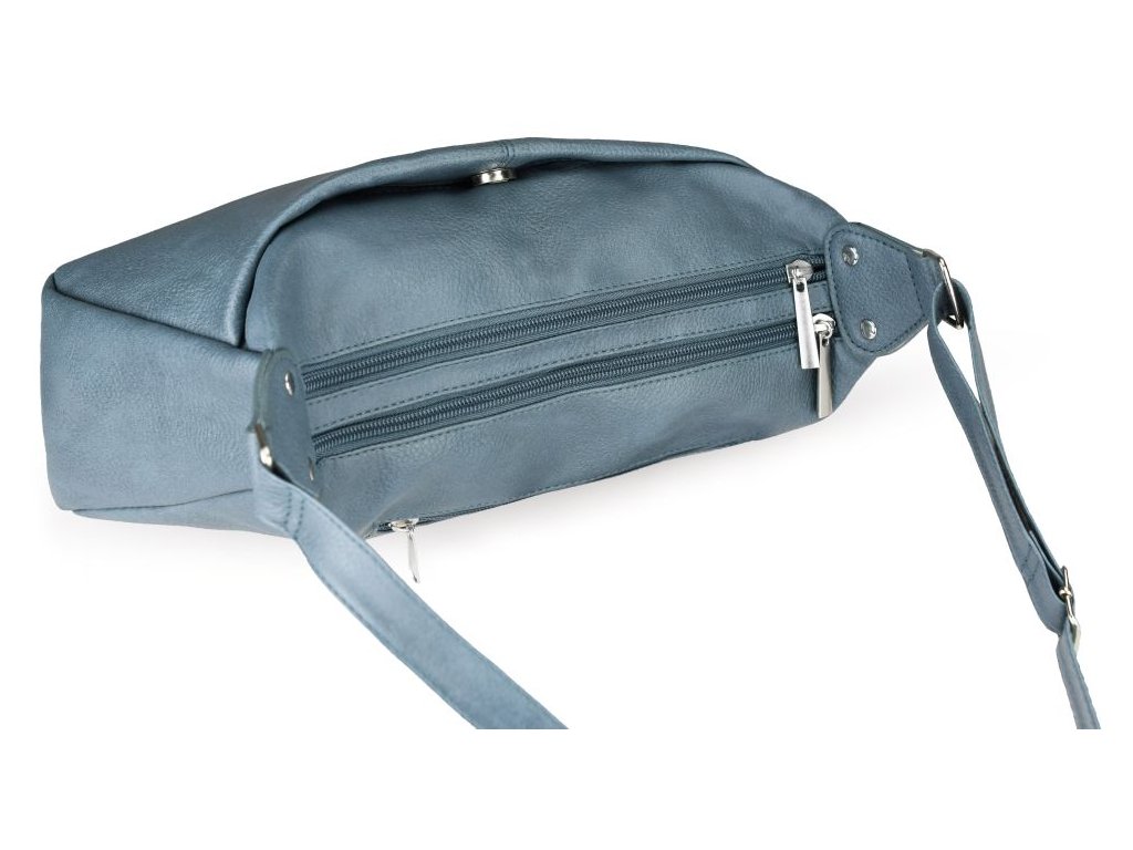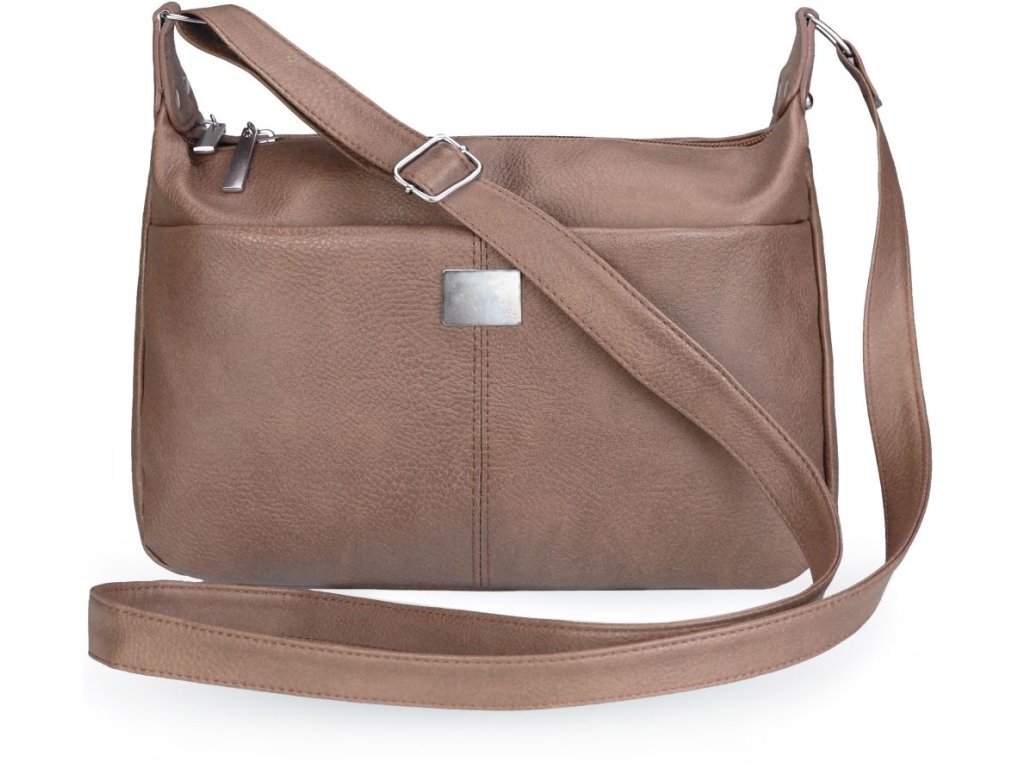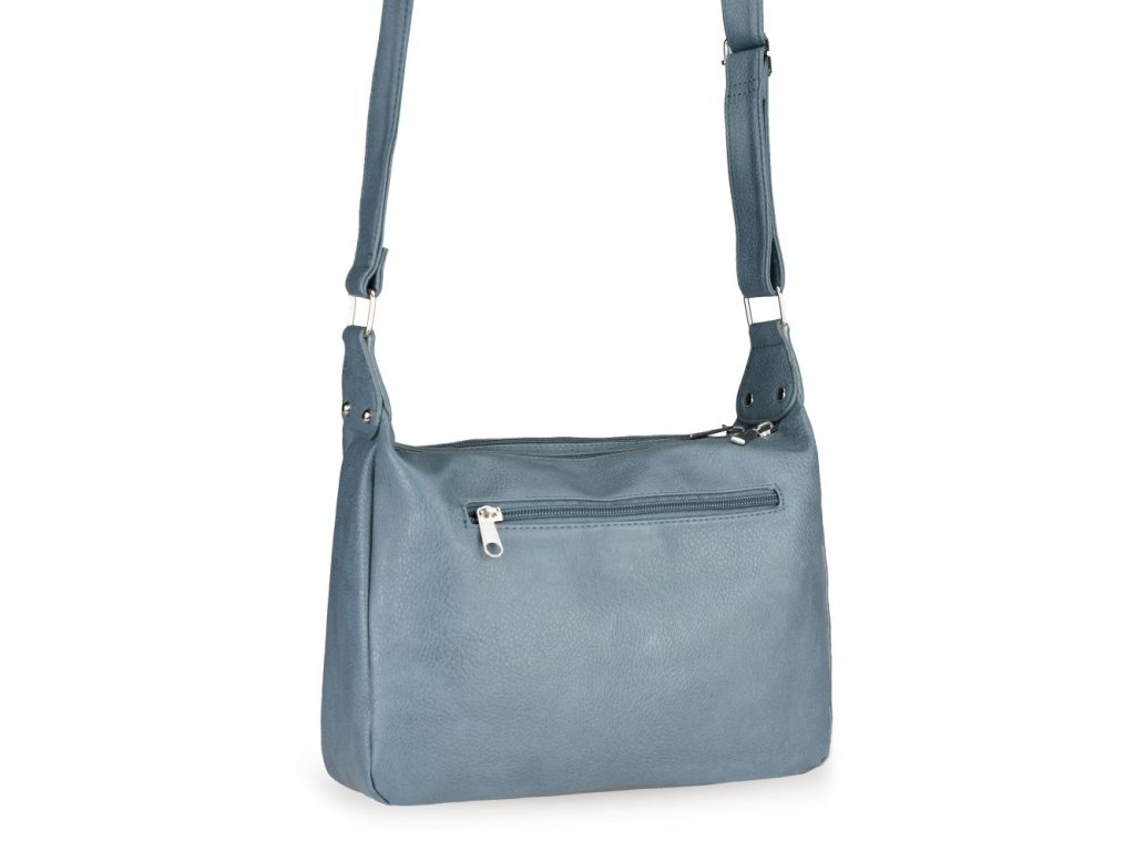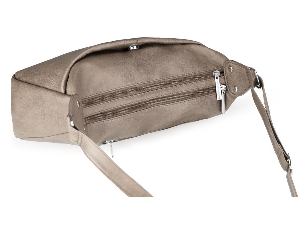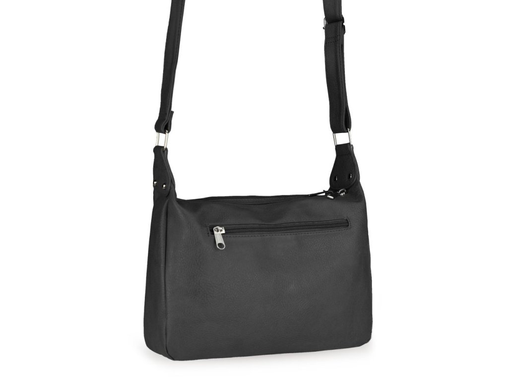 Táto kabelka cez rameno je ideálny doplnok na rande, na párty, do divadla, do kina. Kabelka patrí medzi menšie, unesie to najdôležitejšie. Kabelku tvoria 2 samostatné oddiely na 2 zipsy. Na prednom diele je jedno vrecko na magnet. Kabelka je zdobená iba cvočkami - spoje popruhu a ozdobným plieškom magnetky.